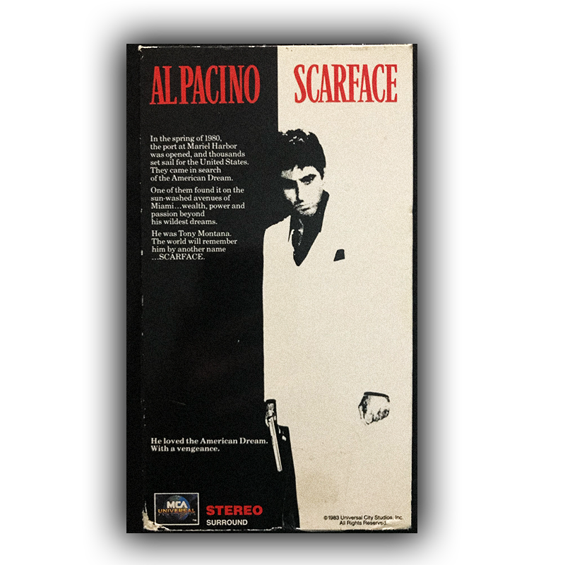 Step into the gritty underworld of Miami with the Scarface VHS Boxset (1990), a must-have for cinephiles and collectors alike. This iconic set brings together the raw intensity of Brian De Palma’s masterpiece, featuring Al Pacino at his explosive best as Tony Montana, the Cuban immigrant whose ruthless ambition propels him to the pinnacle of the drug empire. Encased in its original VHS packaging, this boxset is a nostalgic treasure, capturing the neon-soaked decadence, unforgettable dialogue, and pulse-pounding action that have cemented Scarface as a cultural touchstone. Perfect for display or a cinematic trip back to the 90s, it’s more than a film collection—it’s a piece of movie history.